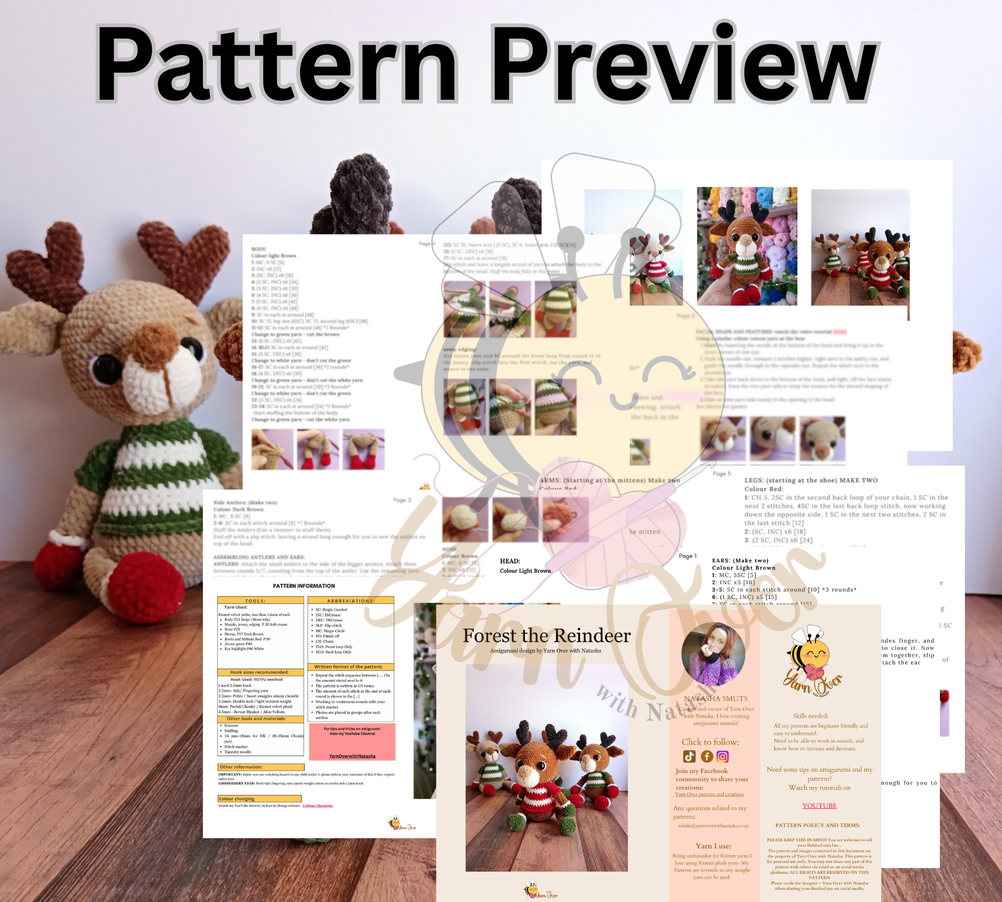 This Listing of Yarn Over with Natasha is a PDF PATTERN ONLY and is NOT a finished product. You are about to purchase a digital PDF pattern to make your own FOREST THE REINDEER.