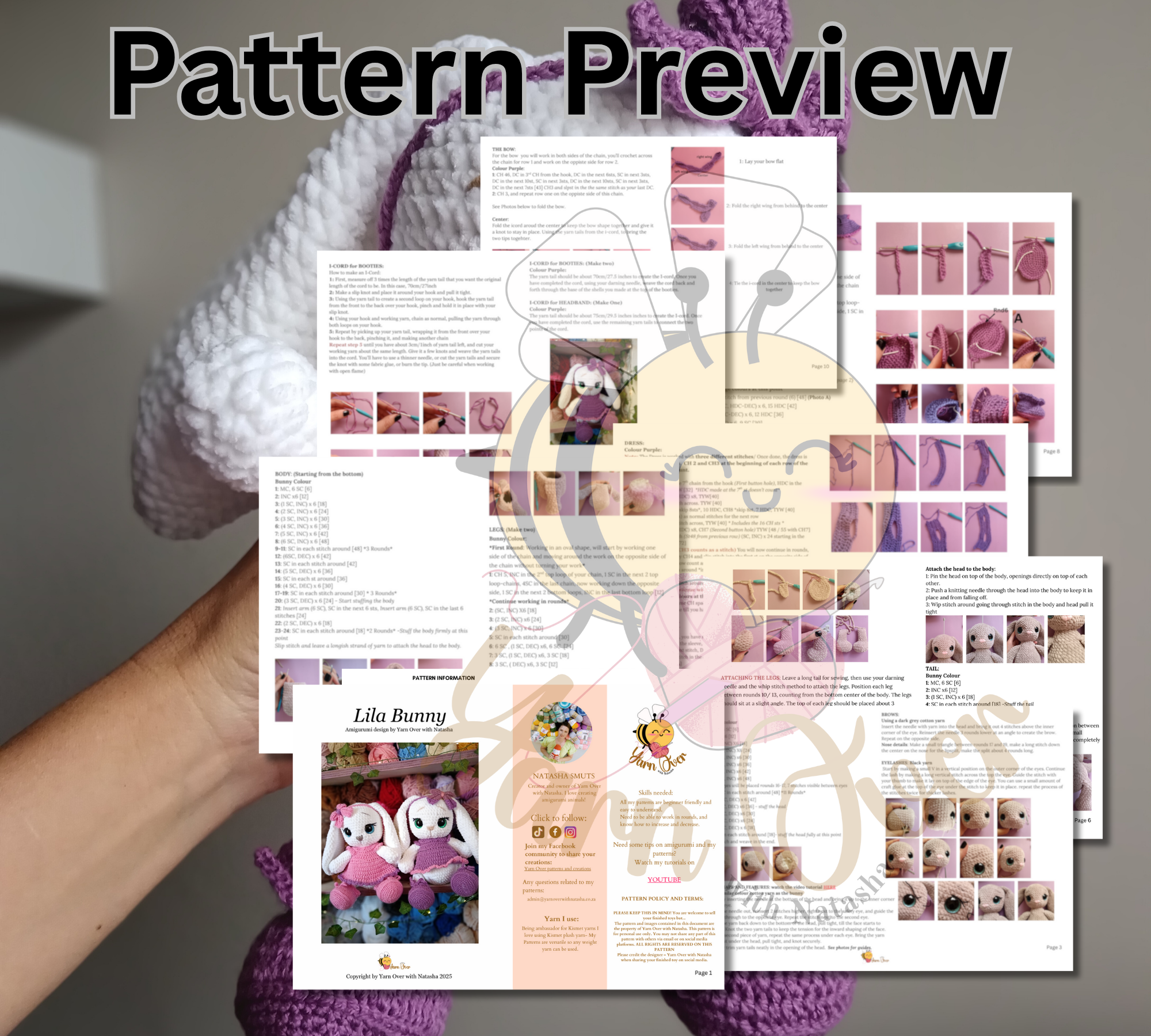 This Listing of Yarn Over with Natasha is a PDF PATTERN ONLY and is NOT a finished product. You are about to purchase a digital PDF pattern to make your own LILA THE BUNNY
